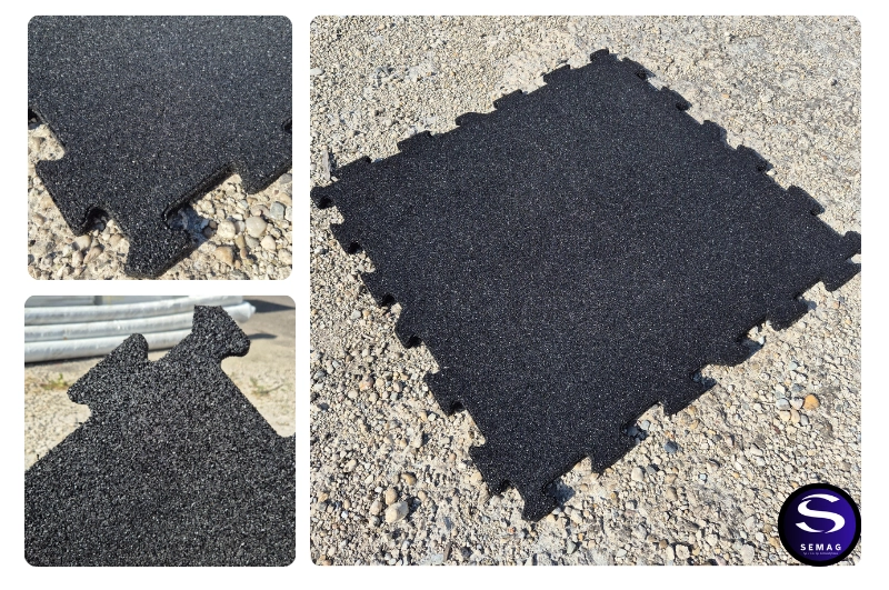 Nasze maty wibroizolacyjne są wykonane z granulatu gumowego SBR, łączonego klejem poliuretanowym w kształcie puzzli.