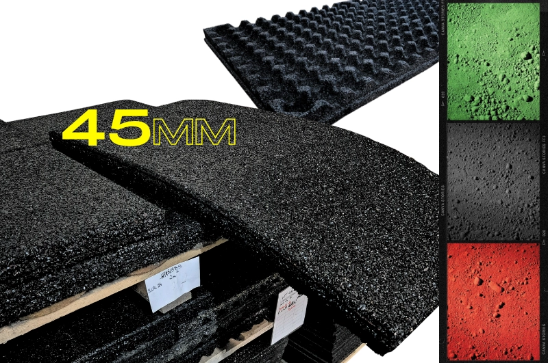 Bestsellerowe czarne płyty z granulatu SBR frakcji 1-3 mm, amortyzujące prostokątne o grubości 45 mm nowej generacji