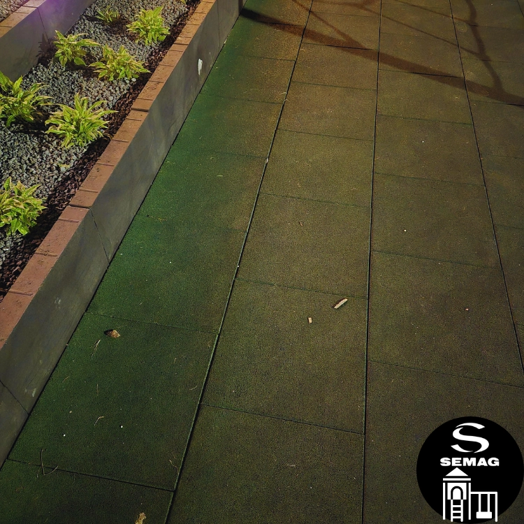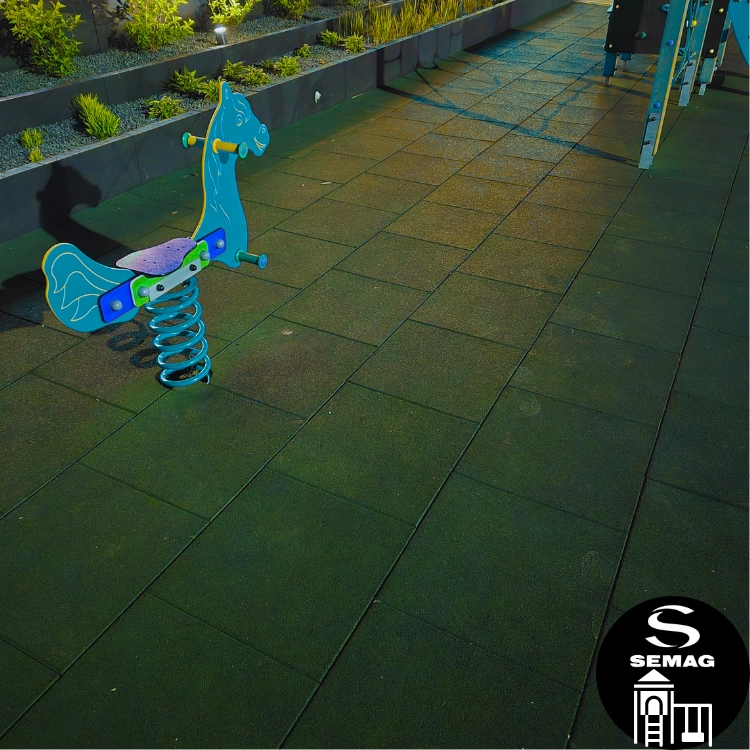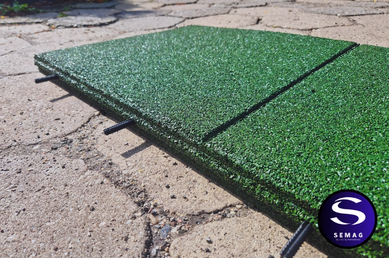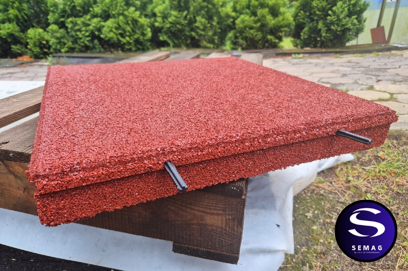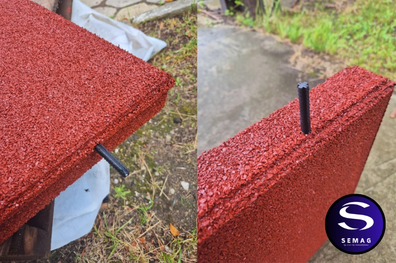 Wzmocnione płyty z granulatu gumowego frakcji 1-3 mm SEMAG T55S to bezpieczna, miękka i amortyzująca nawierzchnia. Płyty te są solidne i ciężkie co zapewni jeszcze lepsze przyleganie do powierzchni i brak możliwości przesuwania się. Model ten poza klasycznym łączeniem na zamek pióro-wpust posiada otwory do łączenia kołkami montażowymi.
