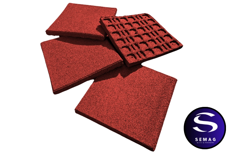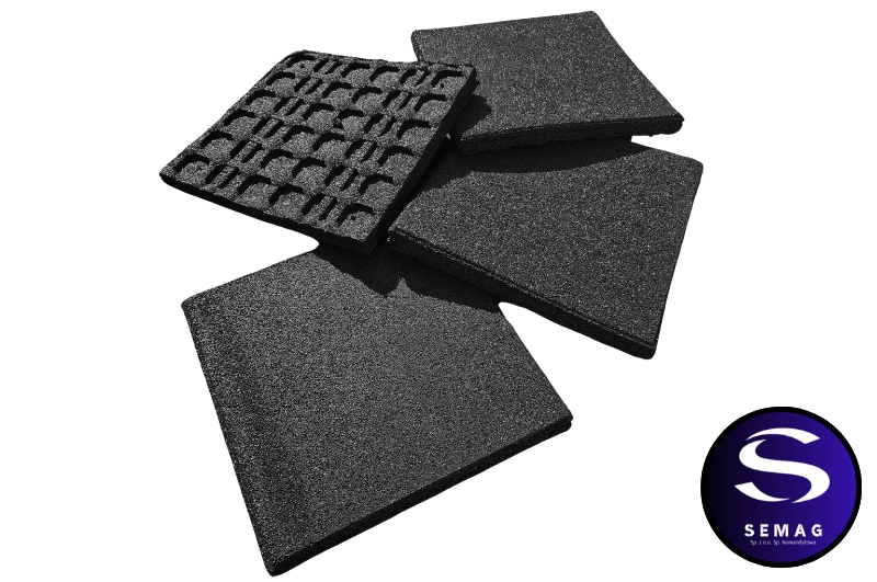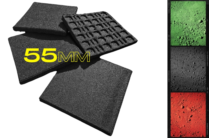 Klasyczne płyty SBR amortyzujące o grubości 55mm z pełnym spodem, łączone na kołki