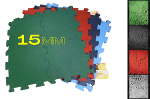 Płyty typu puzzle o grubości 15mm z wysoko skompresowanego oczyszczonego granulatu gumowego SBR o frakcji ziarna 0,5-1,5mm oraz wysokiej klasy spoiwo poliuretanowe.